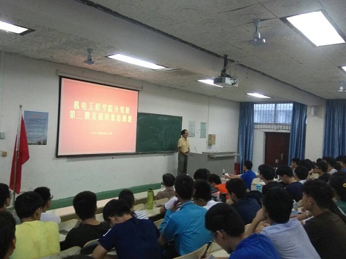 2017年5月20日15:3 0jinnianhui金年会诚信至上分党校第三期发展对象培训班邀请程儒参、杨云山、林廷玖于1-T201讲授党课,报告由学工办主任、机械系第一学生党支部书记崔建兵主持。