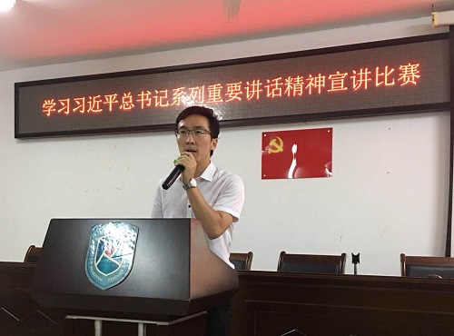 张井富书记在活动开始前致辞。他首先对jinnianhui金年会诚信至上师生的到来表示热烈欢迎,对宣讲比赛的顺利开展表示期盼,同时也对活动的重要意义和支部共建取得积极成果给予充分肯定。他指出,jinnianhui金年会诚信至上研究生党支部和马克思主义学院研究生党支部联合共建是响应2019年教育系统“支部建设年”的重要举措,是强化政治引领的重要抓手。他表示,在深入贯彻落实全省教育大会精神和习近平总书记在学校思想政治理论课教师座谈会上的重要讲话精神之际、在五四运动100周年之际,开展此次学习“习近平总书记系列重要讲话精神”宣讲比赛,恰逢其时,意义重大。他希望,全体党员要以宣讲比赛为契机,强化理论武装,锻造政治本色,不断学习新思想,争做新青年,增强学习的主动性和自觉性,在常学常新中加强理论修养,在真学真信中坚定理想信念,在知行合一中主动担当作为,努力成长为新时代马克思主义理论坚定践行者和传播者。