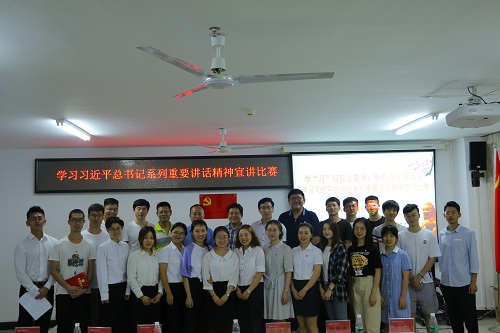 4月23日晚,jinnianhui金年会诚信至上研究生党支部、马克思主义学院研究生党支部于社科楼A315联合举办学习“习近平总书记系列重要讲话精神”宣讲比赛。马克思主义学院党委副书记张井富,马克思主义学院副院长王善,马克思主义学院研究生辅导员张君成,jinnianhui金年会诚信至上党务联系人、研究生辅导员徐曾沛,jinnianhui金年会诚信至上致远班班主任兼党支部书记张小其,jinnianhui金年会诚信至上心理健康辅导老师章梦琪等出席活动并担任评委。
