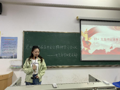 党支部书记章梦琪对学生代表分享的内容进行了相应的补充,并对与会同志提出了要求与希望,要求大家在日常的学习和生活上严格要求自己,并在课后认真学习党的十九届五中全会的内涵;并希望作为当代大学生的广大党员同志和积极分子们要有新时代的担当,能为国家新时期的建设贡献自己的一份力量。