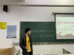 学习会议在庄严的国歌中拉开序幕,随后陈卓、廖伟杰、王远一、封礼荣、郭俊含、傅青达六位同学依次就十九届五中全会部分内涵做了深入的解读。充分让大家认识和了解党的十九届五中全会中全面建成小康社会,国家发展环境深刻而复杂的变化及“十四五”规划工作要求中关于深化改革构建高水平社会主义经济体制、乡村振兴、国防和军队的现代化建设、创新和现代产业体系发展四个大方面的深刻内涵。
