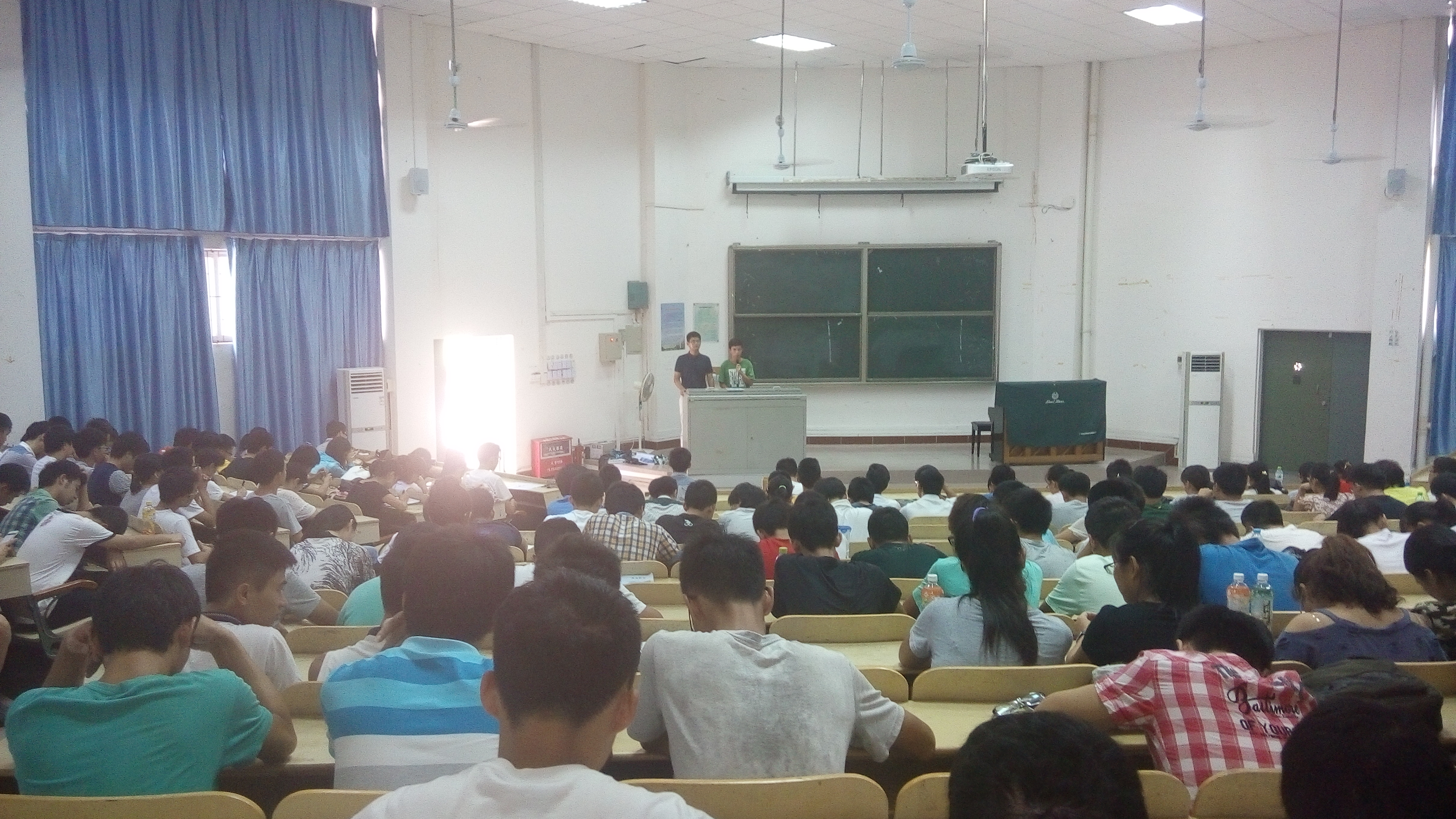 14级年级工作委员会副组长蔡新华带领大家集体学习学生手册,让大家明白了考试的有关规定、纪律、要求。