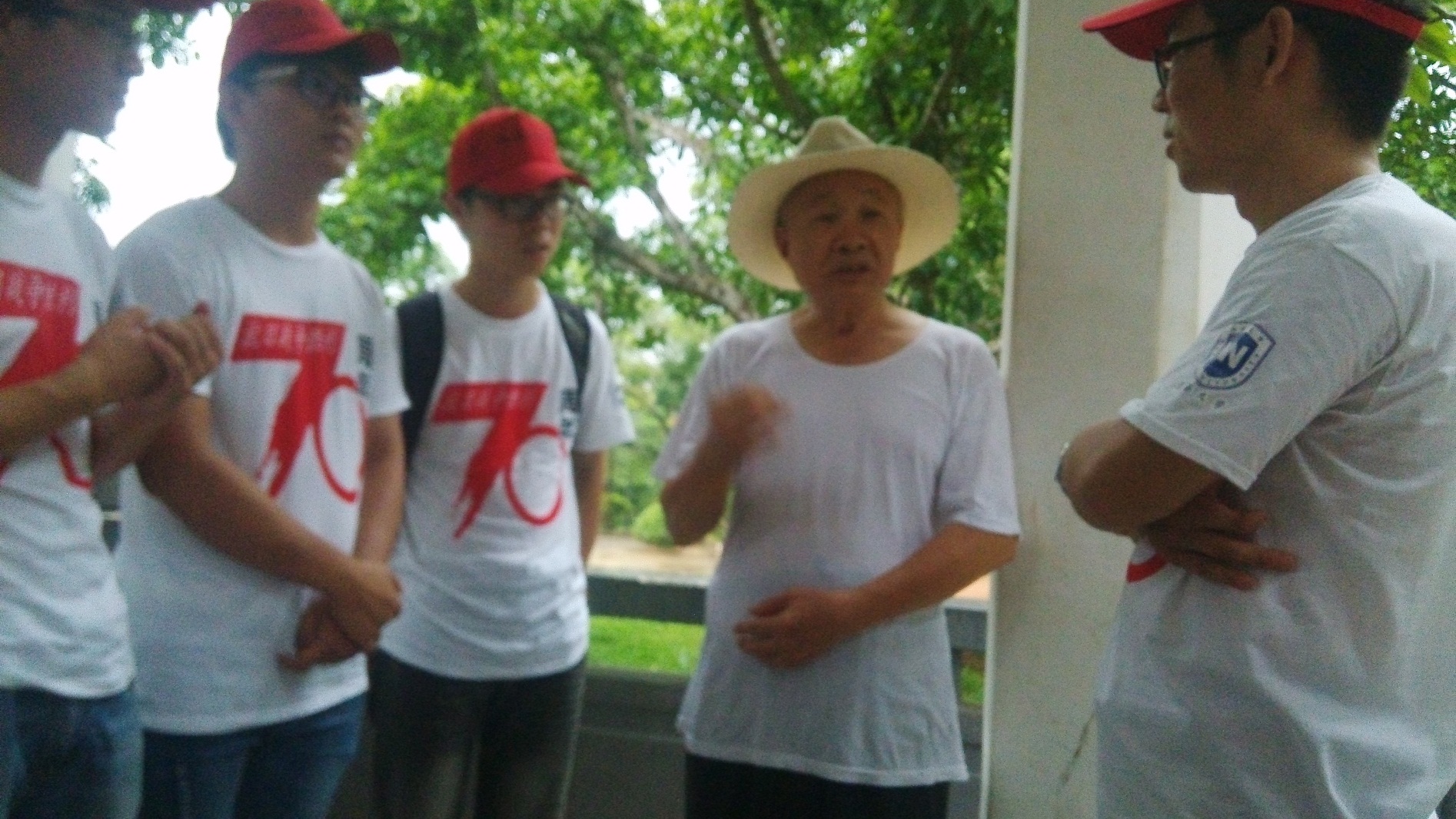 2015年7月20日,jinnianhui金年会诚信至上纪念抗战胜利70周年致远传承寻访团一行10人在海口市人民公园开展抗战七十周年问卷调查活动。活动期间突下暴雨,避雨之时偶遇爱国且博学的孙老先生。