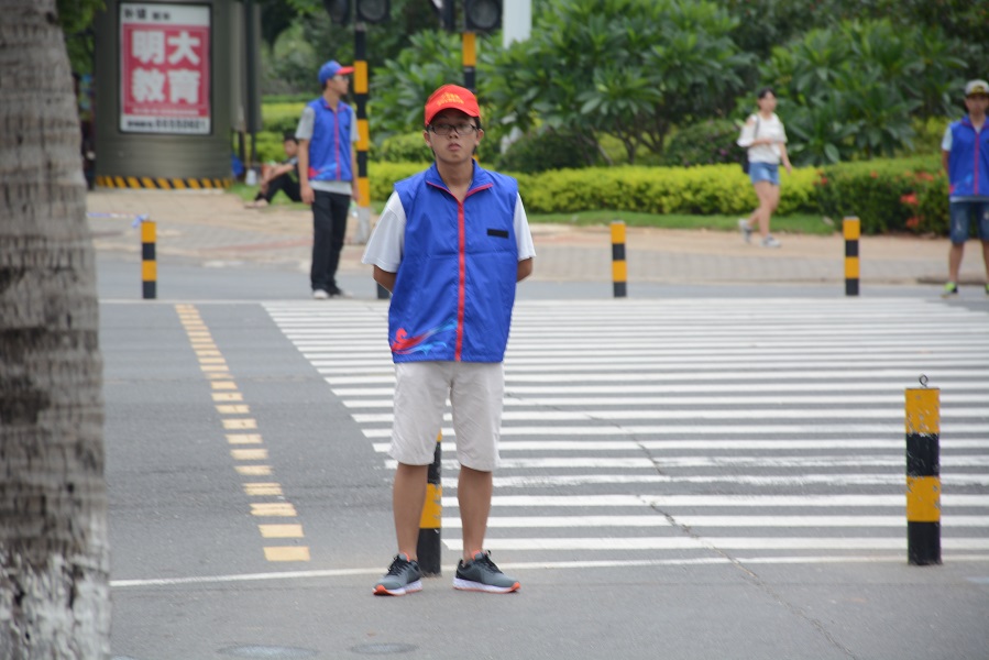 在交警大队的安排下,金年会各志愿者于一点四十五分在所分配的志愿路段准备就绪。志愿者们热情高涨,一如这火辣的骄阳,他们有条不紊地工作,尽职尽责,防止不知情的市民横穿马路而对赛事干扰。头戴小红帽,身着蓝色马甲的志愿者们,成为了赛场上一道亮丽的风景。烈日下近两个小时的等待后,自行车赛队终于抵达金年会的志愿路段。志愿者们背对赛道,依旧严阵以待,他们坚守在自己的岗位上,等待所有车队的通过。