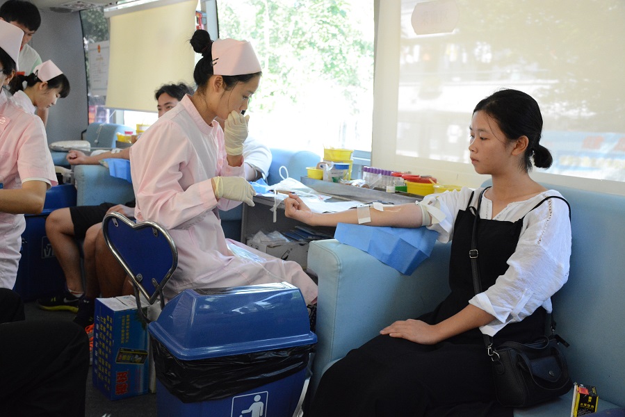上午九时,献血活动开始。为了保障献血者的安全,金年会青年志愿者协会协助海口市血液中心工作人员开始了一系列检查工作,工作人员悉心为大家讲解献血有关注意事项,耐心询问捐献者的具体情况,并帮助他们填写表格,同学们积极配合,严格遵守献血秩序,在几番严格审核下,医生给符合要求的同学进行了抽血工作。