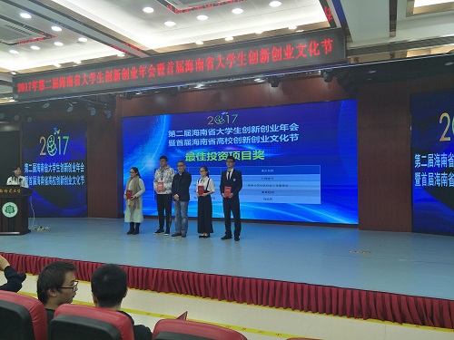 此次年会,金年会学子李伟,唐政,汪东升等人凭借“开椰壹号”项目获得了“最佳投资创业项目奖”,并获得在年会报告闭幕式上进行项目展示的机会;同时,金年会学子翟好宇,赵晨,时强胜的“开椰宝”项目获得最受欢迎展示项目奖项。