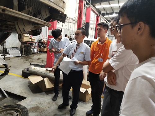 期间,师生们还在工作人员的带领下参观了和平安车险海南分公司合作的汽车伤情鉴定及维修公司,让我们实时感受了汽车伤情鉴定及维修的操作流程。