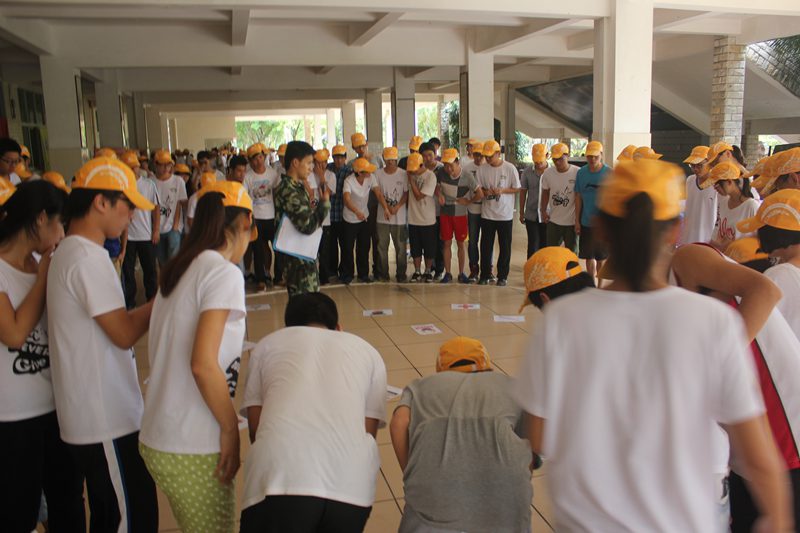 为了能够让本次拓展活动更加专业化,金年会特地从校外请来专业的教练员石俊对全体学生干部展开素质拓展训练。石教练慷慨激昂的开场白感染了每一位学生干部,让大家深深感受到自己做的远远不够,教练最后以一句“完美团队,海大机电!”点燃了每个人的激情,一天的活动拉开了序幕。在教练分好组后,同学们开始了自己的队伍建造,包括队长、队秘、队名、队歌、队旗、队训的确立和展示,同学们的创新思维与团结协作的精神在第一环节就展露无遗。接下来的训练中,队长带领着各队队员完成了“解手结”、“坐膝盖”、“排数字”、“齐眉棍”、“驿站传书”、“高空飞蛋”等一系列训练活动。在整个培训过程中,每一位学生干部都积极的配合,绞尽脑汁地想办法为自己的团队加分,游戏增添了团队成员的友谊并加强了团队的凝聚力。