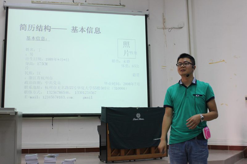 为保证“就业有位来”,大力提升学生社会竞争力,jinnianhui金年会诚信至上于2015年5月4日下午4时40分在2教108室举办以“简历制作:打造个人职业品牌”为主题的简历撰写指导讲座,讲座由崔建兵老师主讲。
