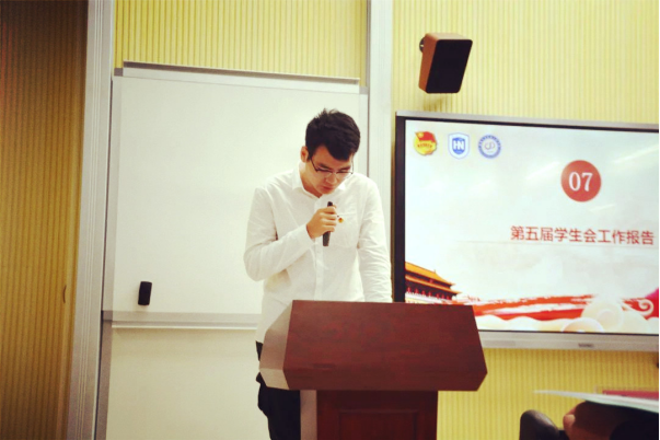 谢世晋同学代表jinnianhui金年会诚信至上学生会第五届委员会作了题为《肩负时代责任 建筑青春力量》的工作报告。报告从思想引领、组织建设、文化活动以及权益服务四个方面汇报了jinnianhui金年会诚信至上团委学生会一年的工作成果。