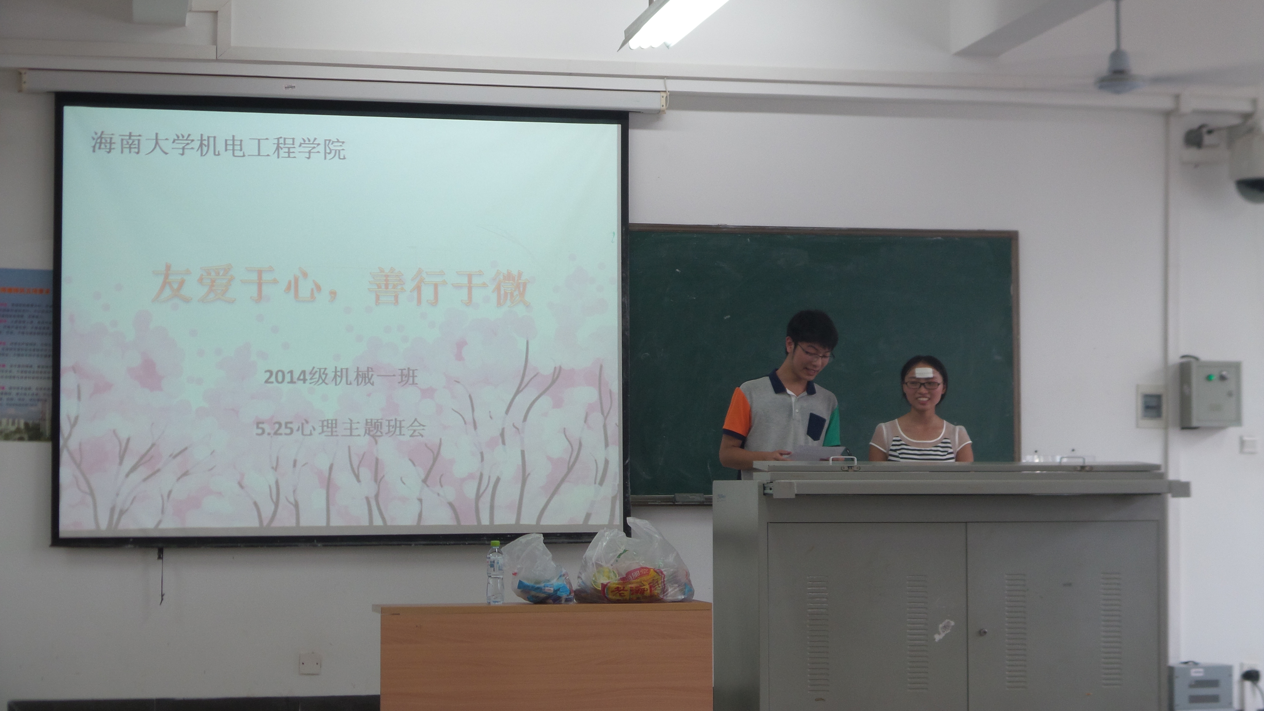 为了增强金年会学生的心理健康意识,提高自我调适能力,促进大学生心理健康教育工作的开展。按照学校5.25心理活动月的统一安排,5月26日下午四点三十,2014级机械设计制造及其自动化1班在4教412举行了“友爱于心,善行于微”主题心理团体辅导班会。李青老师以及14级机械1班全体学生参加了此次班会。
