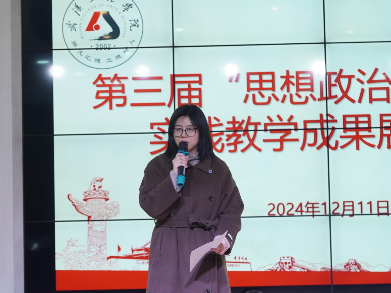 在会上,曹卓就本次实践教学展示活动作了说明。她介绍到,为全面贯彻落实教育部关于高校思政课实践教学的任务要求,推进思政课实 践教学取得成效,推动思政课高质量发展,自2022年开云kaiyun体育成立之初,5门思政主干课均被分配了实践教学学时,每门思政课的实践教学主题也被确定,逐步形成了我校思政课实践教学改革方案并实施完善,2023年开始举办我校思政课实践教学成果展示活动,现已是第三届,经过了三届的积累,学生的实践教学作品形式和内容越来越丰富,涵盖了演讲、沉浸式场馆讲解、情景剧扮演、访谈实录、社会调查报告、项目策划等多种类型,从经典著作深入经济前沿,从红色场馆来到山间地头,从世界风云回看校园家乡,丰富多样的优秀实践教学作品充分展示了新时代大学生的思想素养和精神风貌。随后,一系列实践成果亮点纷呈,让人目不暇接。这些成果以生动的形式展示了同学们在实践教学中的所学所悟,不仅深化了对思政理论的理解,更提升了实践能力和社会责任感。