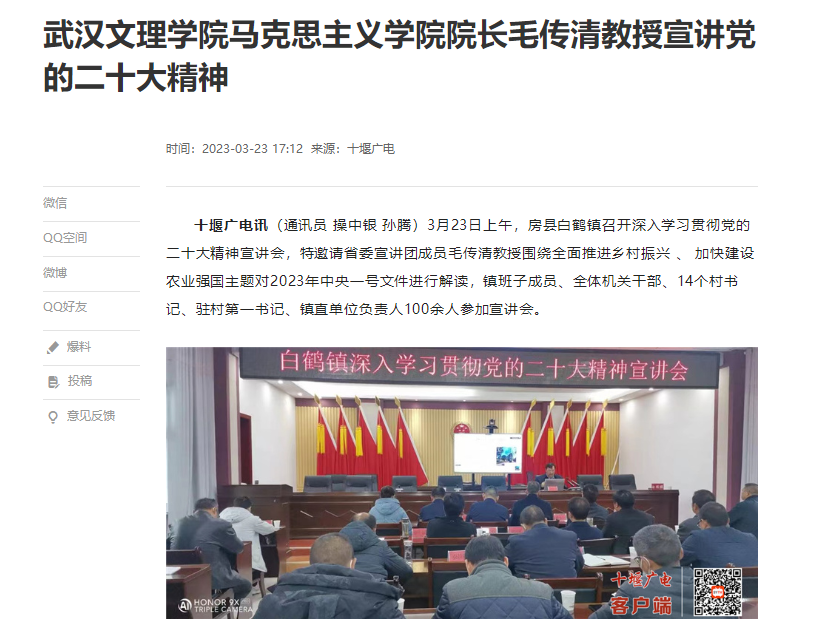 新闻链接:开云kaiyun体育院长毛传清教授宣讲党的二十大精神-十堰广电网 (syiptv.com)