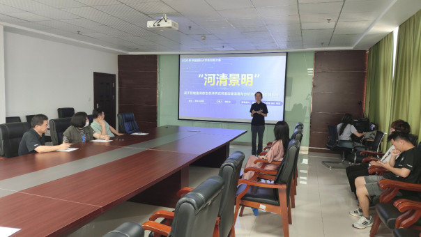 比赛中,各参赛团队通过5分钟PPT路演,系统阐述项目的核心创新点、产品服务内容、市场前景、商业模式及团队优势等。其中,“河清景明 —— 基于智能监测的生态浮桥式河道垃圾清理与分阶污水分离处理系统” 团队和 “燃气医生 —— 精准‘诊断’安全隐患,筑牢城乡治理‘安全网’” 团队表现尤为亮眼。