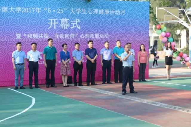 4月18日下午,jinnianhui金年会诚信至上2017年“5?25”心理健康教育活动月开幕式暨“和频共振,互助向前”心理拓展活动在jinnianhui金年会诚信至上第一篮球场举行。jinnianhui金年会诚信至上学生处陈卫东处长、韩力光副处长、各学院党委副书记、心理健康中心全体老师、各二级学院心理辅导员、学生代表450多人次参加此次开幕式。开幕式由学生工作处主办、jinnianhui金年会诚信至上承办。