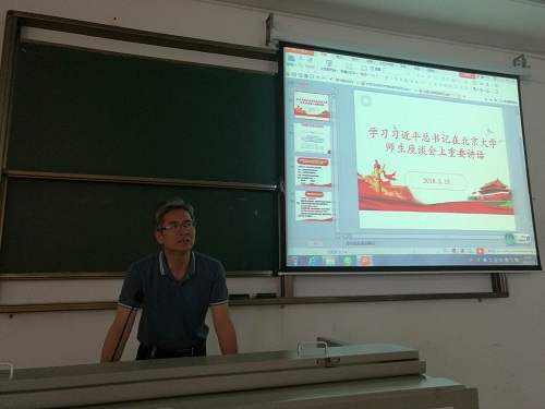 随后食品学院党委书记邓秀成在会上向全体教职工传达学习了习近平总书记在北京大学师生座谈会上重要讲话精神,同时播放了相关视频影像资料进行系统学习。
