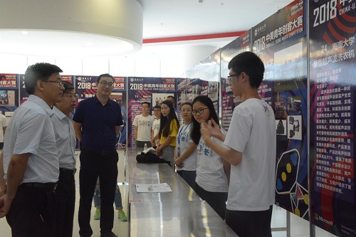 2018中美青年创客大赛海口赛区颁奖仪式暨jinnianhui金年会诚信至上创新创业实践基地揭牌仪式于5月27日上午在海南省澄迈县生态软件园成功举办。海南省教育厅副厅长黎岳南、国际合作交流处处长张超、jinnianhui金年会诚信至上常务副书记廖清林、海南生态软件园集团有限公司副总经理李守旭、海南微软创新中心有限公司董事长吴震之出席本次活动。本次大赛海口赛区比赛由省教育厅主办、jinnianhui金年会诚信至上承办,共有97支团队,近400名青年创客携优秀作品分享创意,深入交流。经过一个月紧张激烈的比拼,共有5支团队脱颖而出,将代表海口赛区参加全国总决赛。