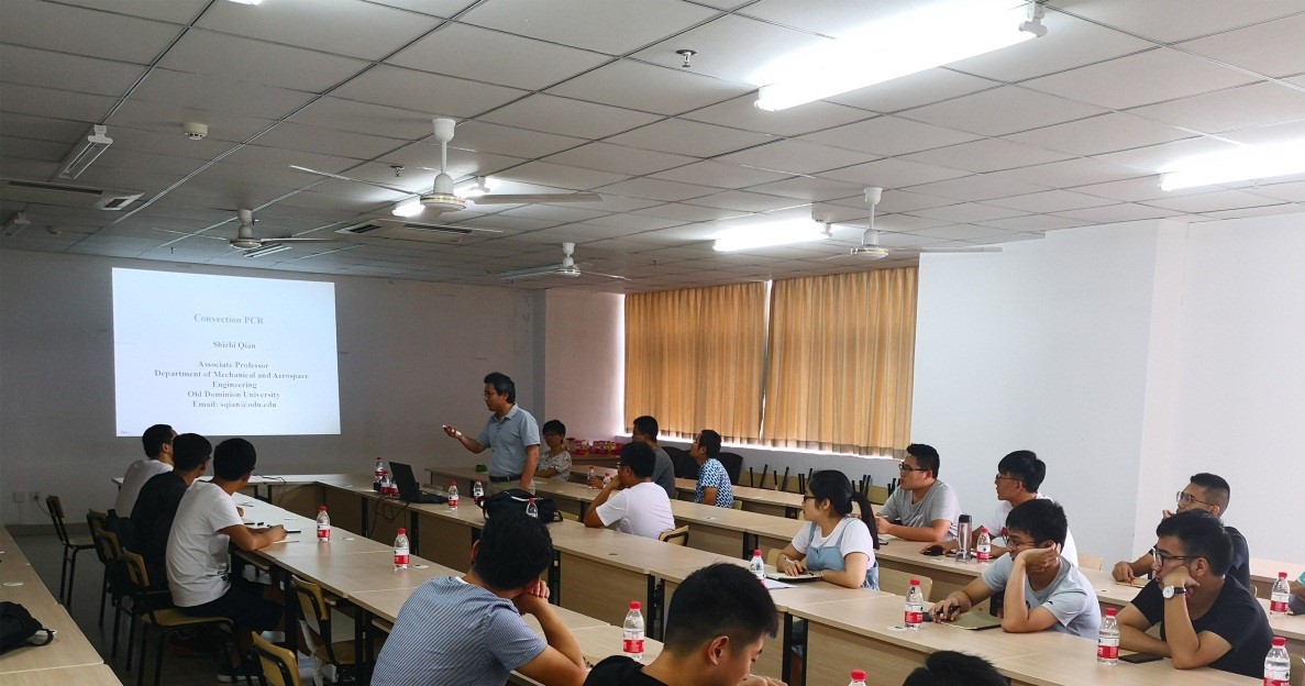 2018年6月20日-26日,美国欧道明大学航空机械学院Shi Zhi Qian教授,应邀来金年会进行为期一周的授课。结合我校本科及研究生教学要求,ShiZhi Qian教授为金年会学生讲解了“PCR”、“颗粒追踪”、“颗粒运动”“微纳尺度电动力学”等相关专业知识,并介绍了美国欧道明大学的相关情况以及国外留学申请资助等相关事宜。同时,为促进学院青年和研究生英文科技论文撰写,ShiZhi Qian