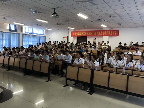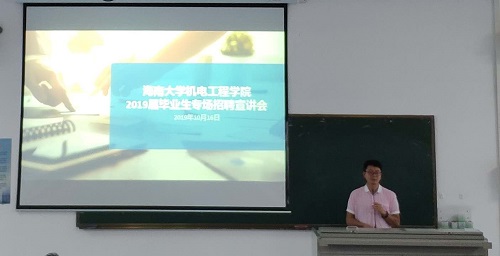 为给金年会毕业生和用人单位搭建沟通平台,2018年10月16日下午三点,jinnianhui金年会诚信至上邀请了7家省内外企业,举办了2019届毕业生第一场招聘宣讲会。出席本次宣讲会的有金海浆纸、中建一局一公司、中国电子科技集团、中软国际、东风南方汽车、海南龙源风力发电、广东大冶摩托车技术等公司人事负责人、学工办主任崔建兵老师,150余名毕业生以及院学生职业发展中心的成员。会议由学生职业发展中心对外关系部陈广宇主持。