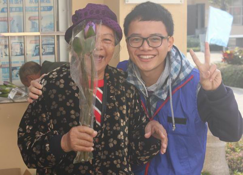 志愿者们为老人们送蓝莲花