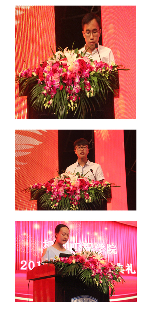 黄国标书记在典礼最后进行总结发言,从修身、学习、做人三个方面给新生以教诲。他说,新生肩负着众多的期望,承载着众多的梦想,他希望2015级新生勇敢地迎接以挑战为主旋律的大学生活,迈开坚实的步伐开始新的征程、实现人生目标、共圆大学梦,中国梦!