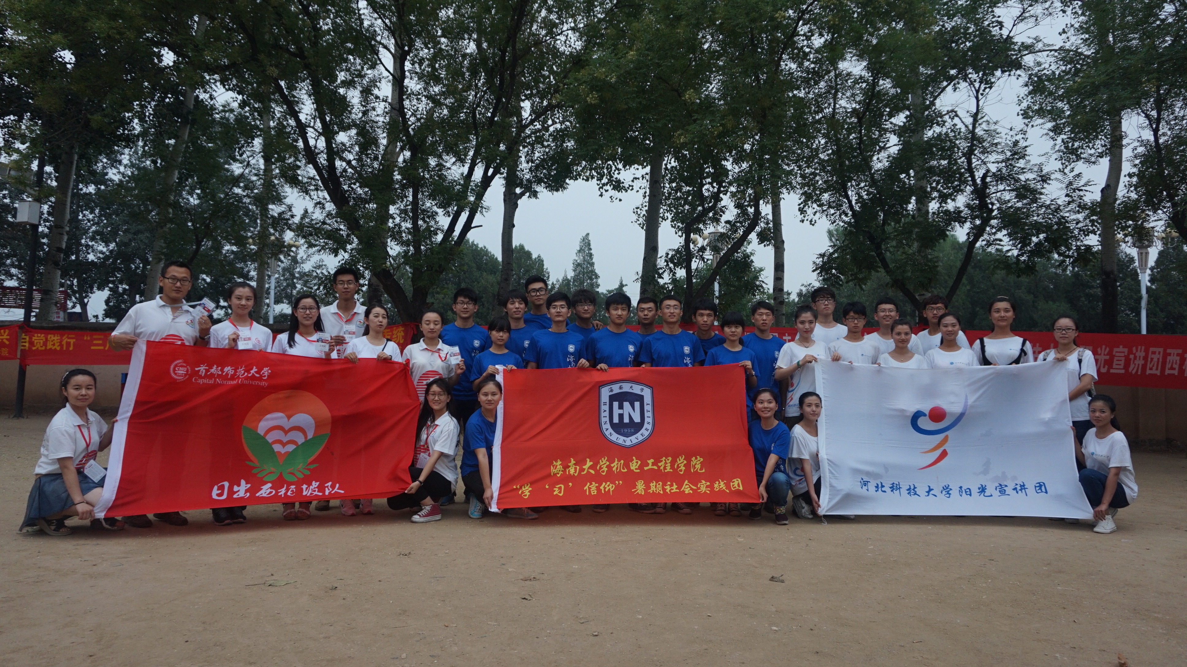 2015年7月,为响应团中央的号召,配合全国大中专学生志愿者暑期文化科技卫生“三下乡”社会实践活动的开展,jinnianhui金年会诚信至上组建了“学‘习’信仰”暑期社会实践队,实践队由十六名学生组成,由王寅和李青老师带队,前往被誉为“新中国从这里走来”的西柏坡开展暑期社会实践活动。本次暑期社会实践活动中,团队在团省委和校团委的悉心指导下,在学院的大力支持下,在河北省平山县团委的热心帮助下,他们学习红色历史,感受红色文化,深入探讨习近平总书记系列重要讲话精神,树立马克思主义信仰,沿着“红色之旅”开展了一系列实践活动。他们走进红色革命老区,和当地农民同居同住同劳动,感受革命老区人民的生活,并以《革命老区的发展现状的研究》、《革命传统教育对当代大学生理想信念教育的作用》、《革命摇篮——红色旅游模式对海南红色旅游资源的开发利用的启示》、《互联网+背景下红色旅游资源的开发与利用》四个课题为核心展开专项调研,关心老区人民发展。同时,团队还联合了首都师范大学和河北科技大学在西柏坡革命老区开展了一系列的宣讲活动,将习近平总书记系列重要讲话精神通过朗诵、演讲、组诗等形式向西柏坡游客和学生宣讲,进一步扩大习近平总书记系列重要讲话精神影响力。