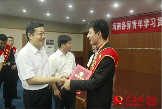 2016年5月4日上午,共青团海南省委在海口举办海南各界青年学习贯彻习近平总书记重要讲话精神暨五四优秀青年表彰座谈会。团省委书记盖文启,副书记曾锋、陈屿,党组成员罗桦以及海南各直属团组织负责人、青年岗位能手代表、青年代表等200余人参加了会议。会议传达学习了习近平总书记在知识分子、劳动模范、青年代表座谈会上的重要讲话精神,并表彰了一批海南省的先进青年集体和个人,其中金年会团委获2015年度“海南省五四红旗团委”称号、2012级机械电子工程专业学生王驭陌同学荣获第22届“海南青年五四奖章”称号。