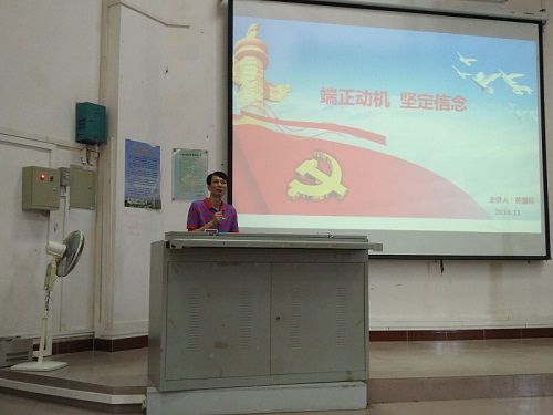 2016年11月6号上午,jinnianhui金年会诚信至上分党校第二期党员发展对象培训班第五讲由学院党委黄国标书记讲授《端正动机,坚定信念》,培训班班长尹凡主持本次培训学习。参加本次党课的有本期发展对象和积极分子。