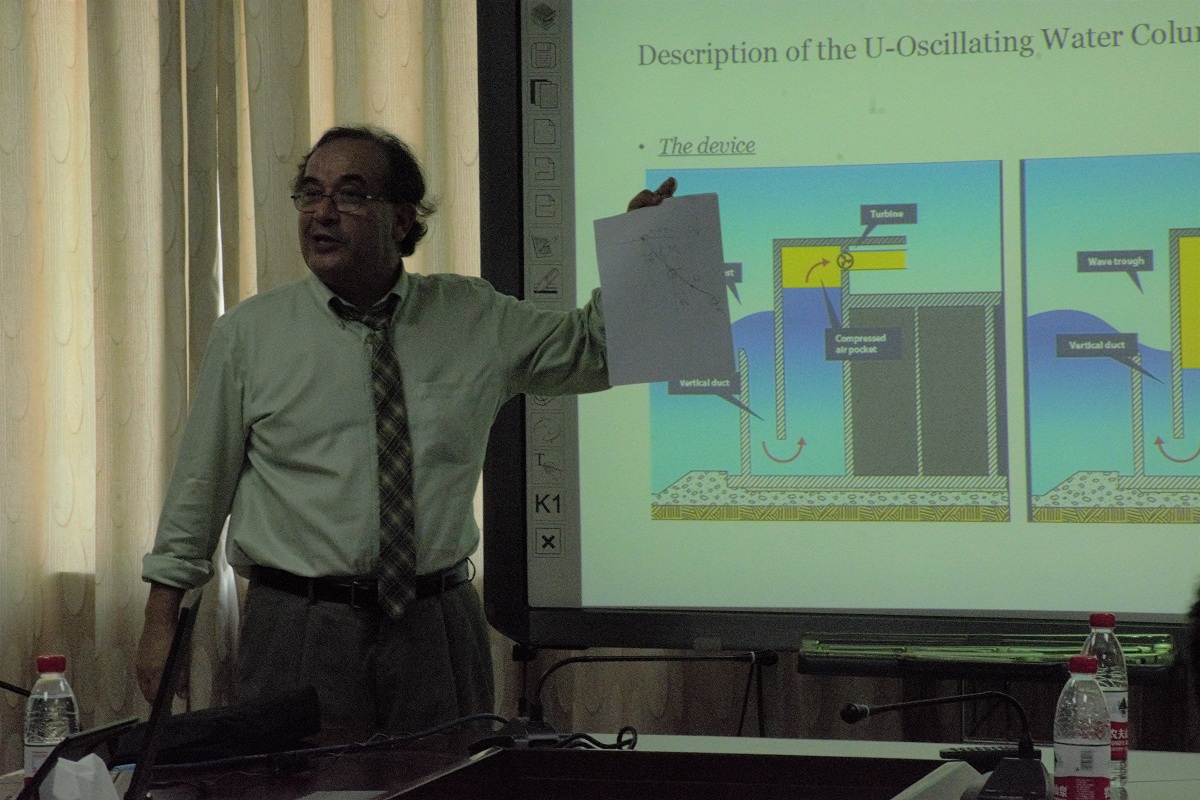 马庆芬副院长对Pol D. Spanos教授的到来表示欢迎,并用英文从历史沿革、师资结构、学生培养、对外交流与合作、科学研究等方面介绍jinnianhui金年会诚信至上。随后,Spanos教授对非线性随机振动分析理论进行了深入的剖析,细致地介绍了非线性随机振动分析技术在机械工程、航天工程、车辆工程、控制工程、材料工程等领域的应用前景,尤其以振荡水柱岸式波浪能发电系统中波浪能采集的结构参数优化为例,具体介绍了该项技术的应用过程和效果。讲座中Prof.Pol D.Spanos儒雅的气度,严谨的论证,风趣的语言激发了师生们的兴趣,参会师生踊跃提问,与Spanos教授开展了热烈的互动与讨论,学术交流气氛活跃。