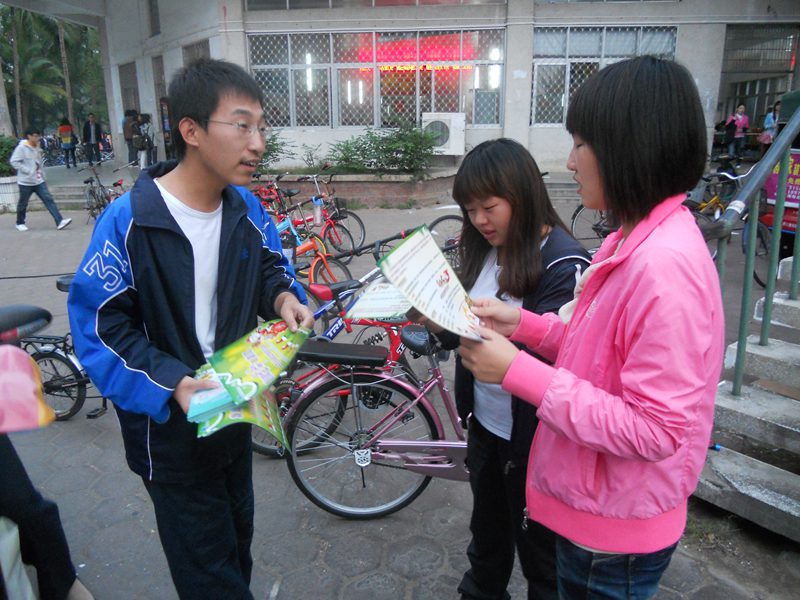 机电志愿者在发献血宣传单