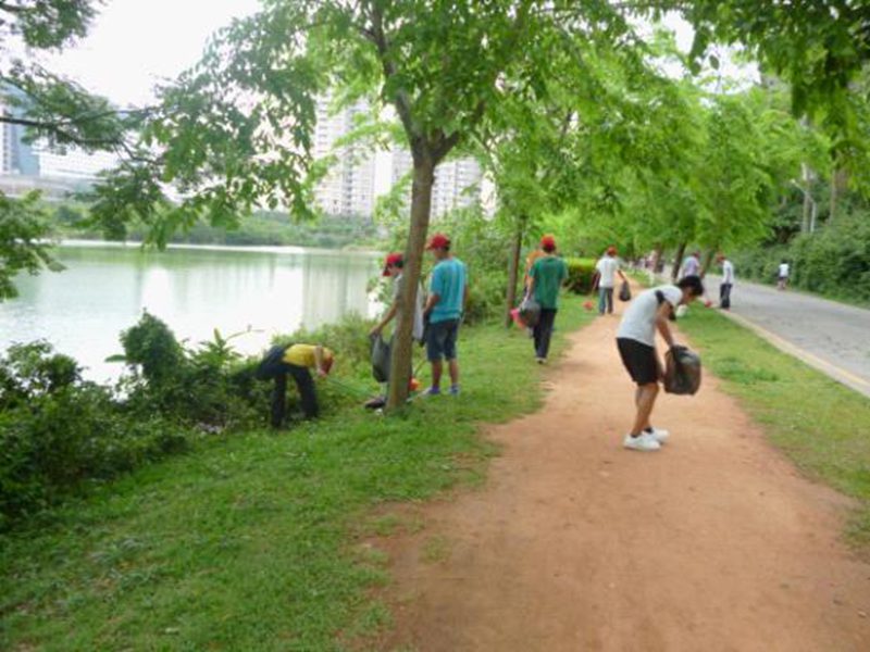 下午5:30,近百名志愿者准时在起点草坪集合,他们情绪高涨,跃跃欲试,经过分组之后,志愿者们迅速展开了行动。不多会儿,整个东坡湖周围都能见到头戴小红帽志愿者们,他们分工明确,有的沿湖清理白色垃圾,有的处理周边折断的树枝。任务虽然艰巨,他们却没有一丝怨言,在劳动中享受着奉献的快乐。经过一个下午的清扫,东坡湖四周焕然一新,清洁而又温馨。