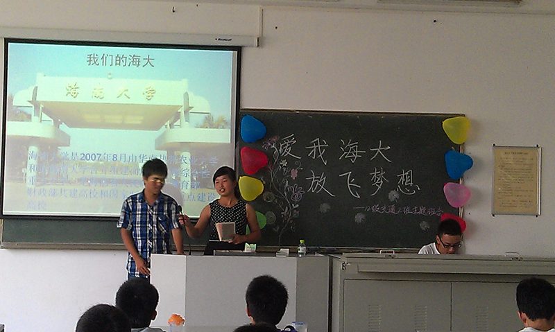 2012年9月28日上午10:00,jinnianhui金年会诚信至上2012级交通运输2班在三教206教室举行“爱我海大 放飞梦想”主题班会。出席班会的有班主任崔建兵和班主任助理张宇同学全体交通2班同学参加了此次班会。班会由副班长张晨曦同学和学习委员穆艳丽同学主持。