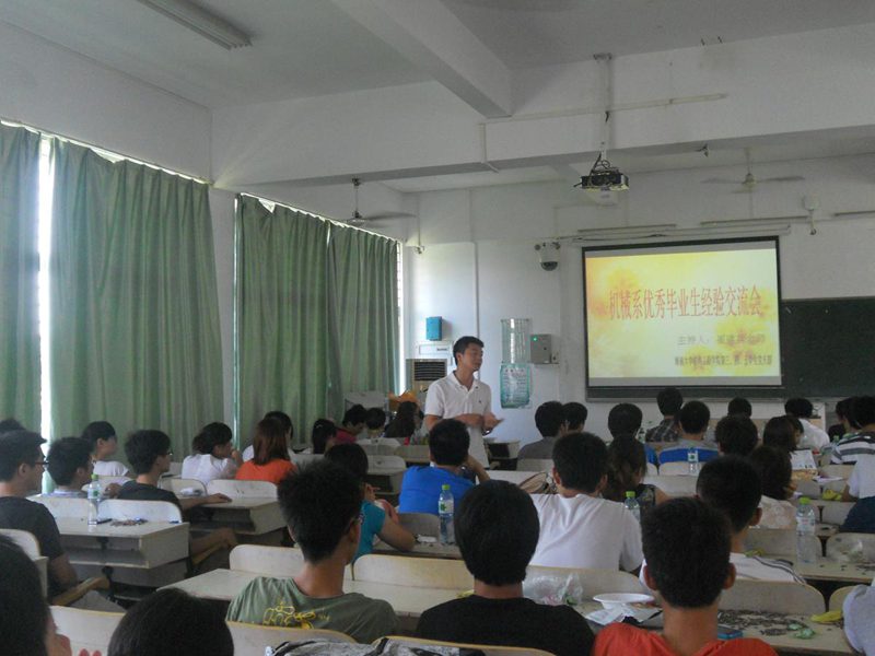 崔建兵老师首先介绍到会的师兄、师姐,并请师兄、师姐一一介绍自己考研、保研及工作经验。在会上,保研到清华大学的连祥威同学,保研到浙江大学的徐顺同学以及考取其他大学的同学就考研的计划安排,院校选择,导师及专业选择,参加夏令营活动等进行了全面的阐述和讲解,为师弟、师妹们介绍了各自的成功的经验,以及需要注意的事宜。参加工作的徐善斌同学,英文同学,张晓东同学分别介绍自己的工作经验及在找工作过程中需要注意的方面和需要准备的问题,并在就业方向、就业前景等方面进行了详细的介绍。在师兄、师姐的教导下,师弟师妹们积极的从学习,生活,工作等方面踊跃提问,充分体现了同学们求学之心,成才之愿。最后在热烈的气氛中,大会圆满落幕。