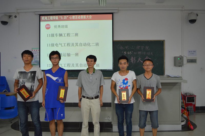 2013年6月7日下午4:40,jinnianhui金年会诚信至上2013年5•25心理健康宣传月表彰大会在4教103教室拉开帷。jinnianhui金年会诚信至上党委黄国标副书记,学工办主任陈秀妍老师,辅导员何映敏、崔万春、崔建兵老师,以及在本次活动中获得表彰的先进班级和个人出席表彰大会,来自各班级班长和心理委员近百名学生参加了本次表彰会。