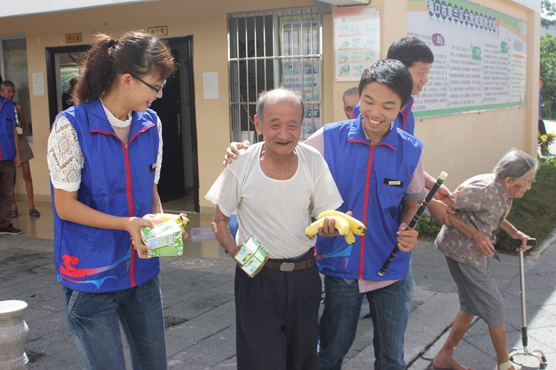 7月15日上午,jinnianhui金年会诚信至上“闪亮青春,阳光扶老”暑期“三下乡”志愿服务队走进海口市大致坡敬老院开展爱心亲情陪护活动。