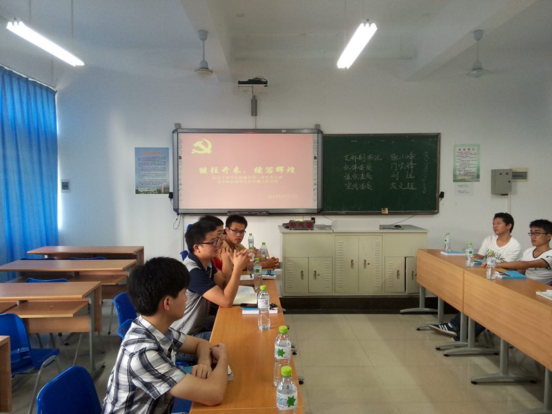 2014年9月9日下午4:30,jinnianhui金年会诚信至上机械系第一学生党支部新学期召开以“继往开来、续写辉煌”主题的党建工作及支委换届大会。机械系第一学生党支部崔建兵书记及全体党员,预备党员共18人参加了本次会议。会议有党员张小峥主持。