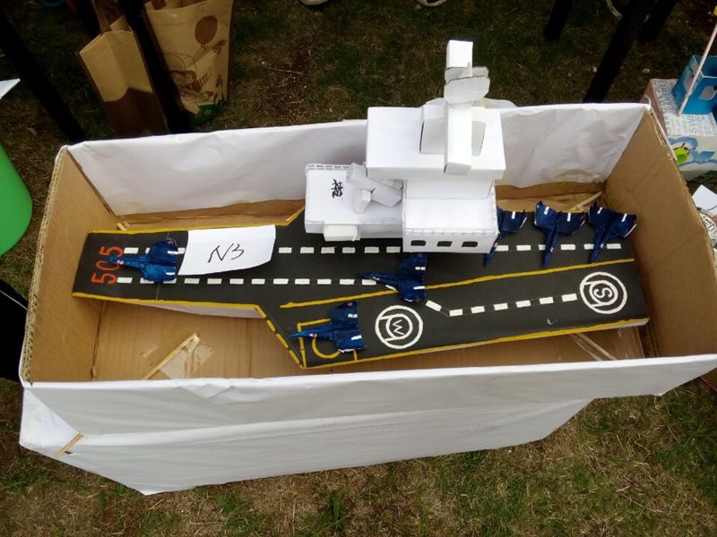 本次比赛以13、14级学生为主力,以宿舍为单位共制作40余件模型。通过同学们的灵活构思和悉心制作将废弃纸板、易拉罐、一次性筷子改造成为一件件活灵活现的机械模型,呈现在我们面前的有威武霸气的航母、轻巧灵活的飞机、“陆战之王”坦克、简单实用的谷皮分离机和小巧玲珑的自行车等,每个模型自有特色,结构清晰,创意十足。为保证比赛公平、公正,本次评选活动特邀参赛各班级的班长、团支书和生活委员担任评委。评选现场气氛热烈,参赛队员积极地向大家介绍了作品的性能并进行了演示,加深了大家对作品的了解。经过了激烈地角逐,首轮评选共有14件作品脱颖而出(具体入围宿舍见附录),其中在运用机械原理基础上使其具有实用价值的大型挖掘机设计尤为出众。