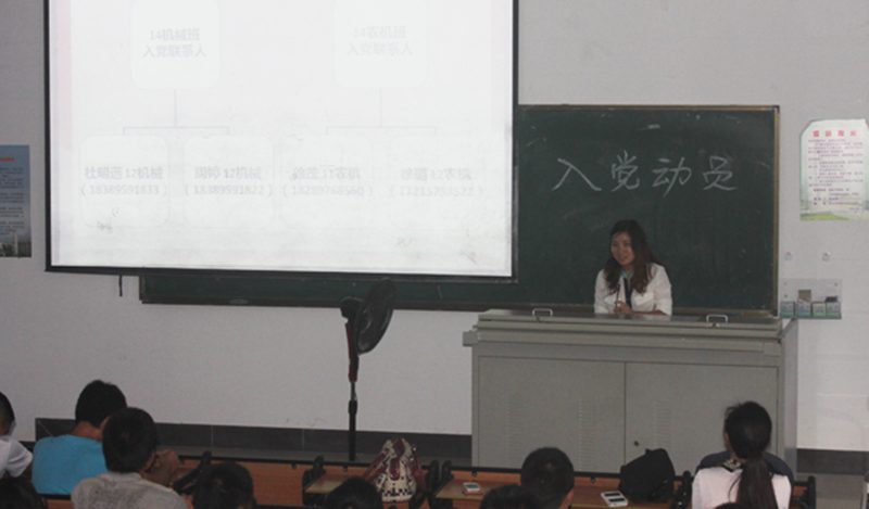 11月19日下午,jinnianhui金年会诚信至上机械系第二学生党支部新生入党动员大会在4教209顺利召开,支部书记余梦月及各支委、全体14级农业机械化及其自动化专业和机械设计制造及其自动化专业新生参加本次会议。本次大会旨在动员学生积极入党,宣传党的方针,介绍入党流程与注意事项。