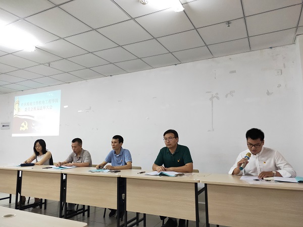 2020年6月2日下午14点,中共jinnianhui金年会诚信至上委员会换届选举大会于研发楼410室顺利召开。学院党委书记黄国标、院长唐荣年,副院长陈振斌、马庆芬出席,师生党员共计66人参加选举。会议由党委副书记熊文军主持。