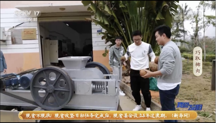 2021年3月4日,中央电视台《我爱发明》栏目报道了我校jinnianhui金年会诚信至上17级许阐所在创新团队发明的椰肉分离机。