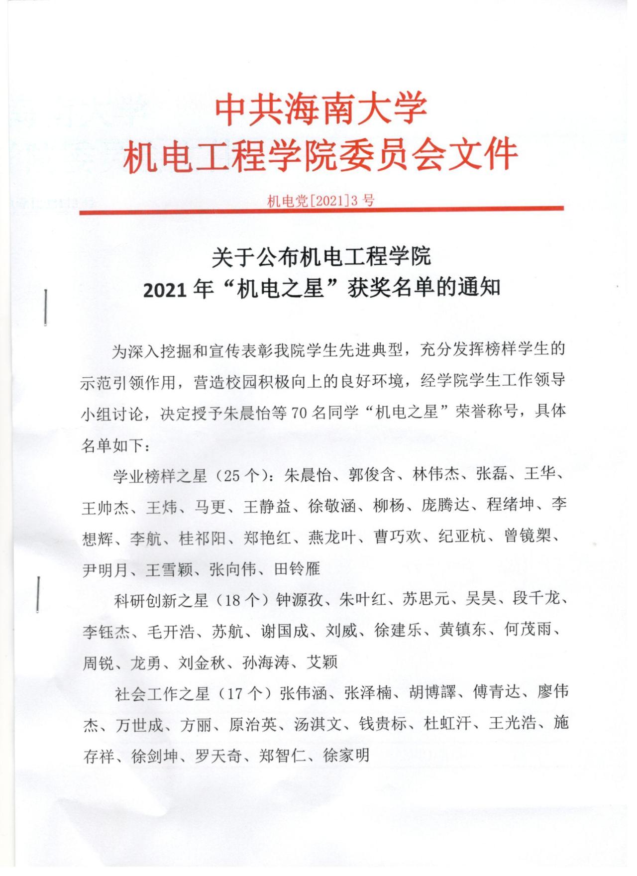 关于公布jinnianhui金年会诚信至上2021年“机电之星”获奖名单的通知