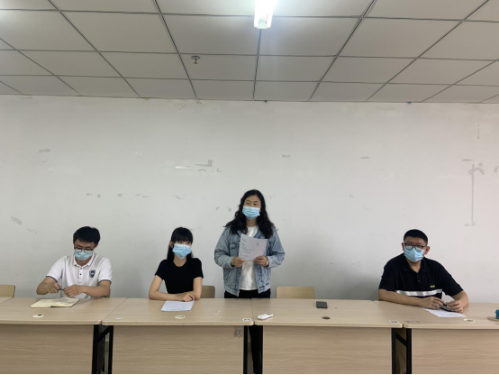 会议伊始,周霞老师向与会同学传达假期期间学校疫情防控有关规定,告知同学们清明节的放假时间为4月3日至4月5号为期三天,并要求同学们要继续遵循学校闭环管理的规定,做到非必要不外出,如特殊情况需要外出的同学,应在网上服务大厅请假,辅导员老师核实情况确认无误后方可允假。强调严禁学生私自外出,学生在校期间应注意个人防护,保持安全社交距离。