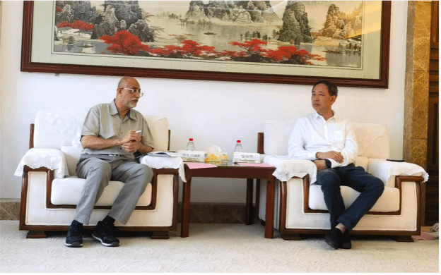 张喜瑞对拿督巴威斯一行表示热烈欢迎,介绍了jinnianhui金年会诚信至上在热带农业和智能化农业装备研发等方面的优势、天然橡胶的产业现状及研发的割胶装备—固定式螺旋仿形割胶机和自走式智能割胶机器人。