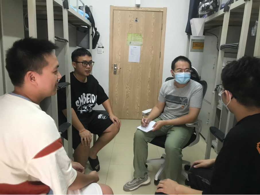 此次活动走访的宿舍主要是11栋和12栋的新生宿舍。在本次活动中,有同学提到了一些问题,比如:有同学提到四六级不能报名、做核酸要排很长的队、宿舍的隔音效果不是很好、洗漱的设备太陈旧、淋浴头太旧、导致出水不净等问题。对以上的问题,党员老师都给出了相应的解决办法,无法现场解决的问题党员们也记录下来,向党支部反映。