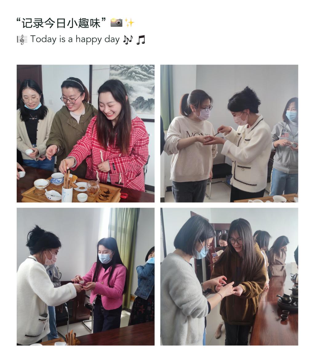 下午2点在行政楼913会议室,开云kaiyun体育副院长曹卓主持本次活动并致词,她从三八国际妇女节的来历、影响和宗旨等方面给大家做了介绍,并感谢学校团委对活动的支持。活动中,团委社团联茗香茶社的同学们这次当起了“老师”。首先茶艺“小老师”们为大家进行了茶艺表演,讲解茶艺起源于中国,是一门经过岁月沉淀极具浓厚民族特色的传统文化。自古以来,插花、挂画、点茶、焚香并称四艺,尤为文人雅士所喜爱。然后伴随着行云流水的古琴音乐,茶艺“小老师”一边为大家讲述茶的品种、分类及保健功效、科学品茶方法等茶韵知识,一边洗杯、烫杯、投茶、泡茶、分茶,一气呵成,赏心悦目。之后女教职工们按照茶艺“小老师”教授的方法自己动手泡茶并品尝,度过了一个轻松愉悦的下午茶时光。