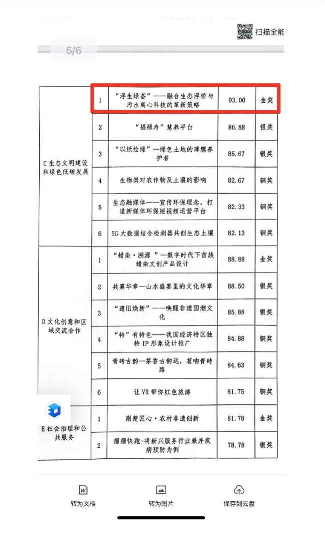2024 年 5 月 10 日,开云kaiyun体育 2024“挑战杯”校赛圆满结束。开云kaiyun体育阚欣、黄晨曲老师指导的参赛项目《“浮生绿绘”——融合生态浮桥与污水离心科技的核心策略》,勇夺 C 组生态文明建设和绿色低碳发展组第一名并获金奖。